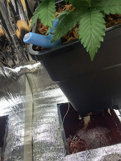 De emmer moet zwart zijn om te voorkomen dat licht de wortelzone kan bereiken; licht beschadigt wortels. Enkele dagen in de vochtige atmosfeer in de emmer stimuleert de wortels uit de pot te groeien, de zuurstofrijke voedingsoplossing in – hoewel de meeste gebruikers liever eerst water van boven geven om er zeker van te zijn dat de wortels niet uitdrogen voor ze het reservoir bereiken.