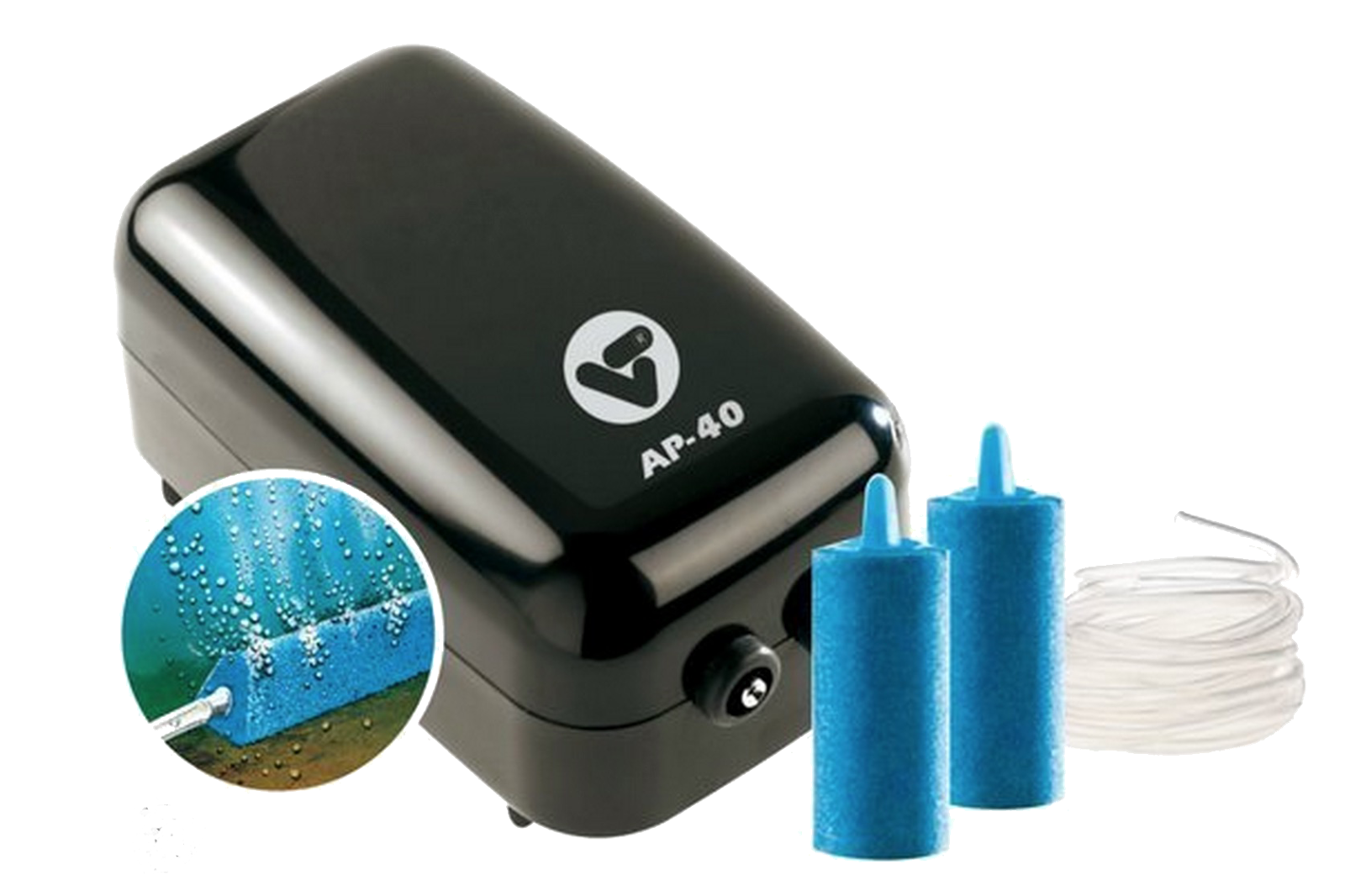 Mooie beluchtingspompjes kan je bij koiwinkels kopen, zie bijv. de stille Hailea V20 (15W, 20 l/min, €47,50)