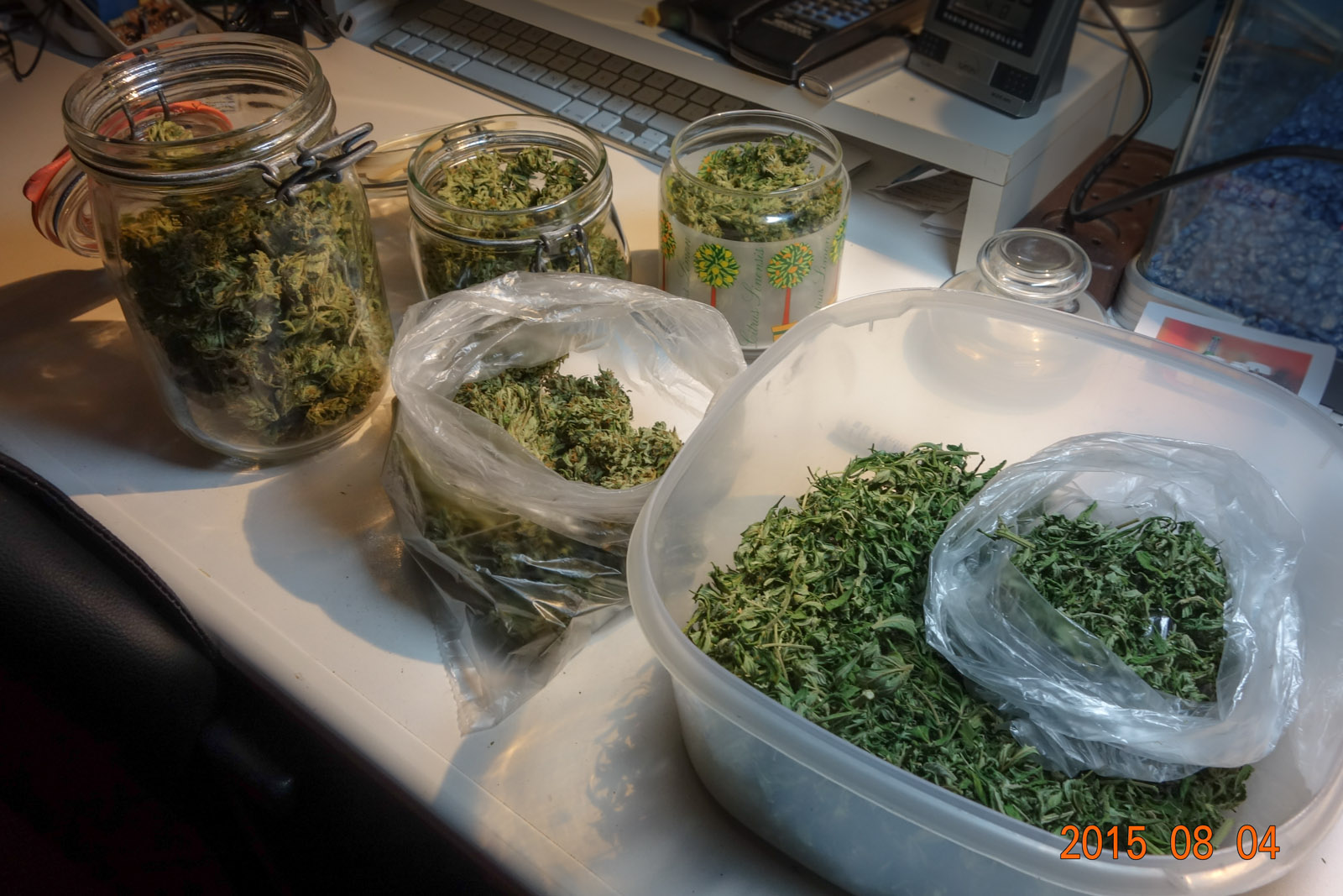 Totaal : 92 gr. en een doos knipafval om wietolie te maken.